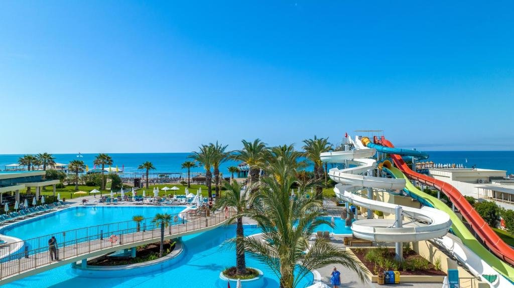 1. Private Beach and Outdoor Pools: The resort’s prime beachfront location offers direct access to the golden sands and clear waters of Lara Beach. Additionally, the hotel boasts multiple outdoor pools, including a family pool, an adults-only pool, and a children’s pool. Water slides and loungers by the pools ensure a fun and relaxing experience for guests of all ages.